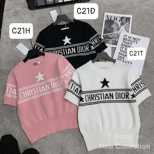 Áo Dior trắng/đen/hồng có cổ